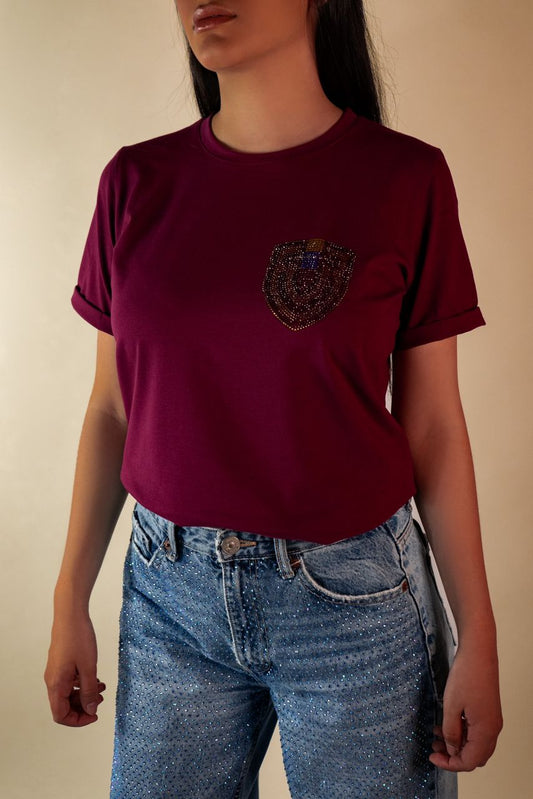 Vino Tinto Pecho, Corte Silueta, Manga Corta