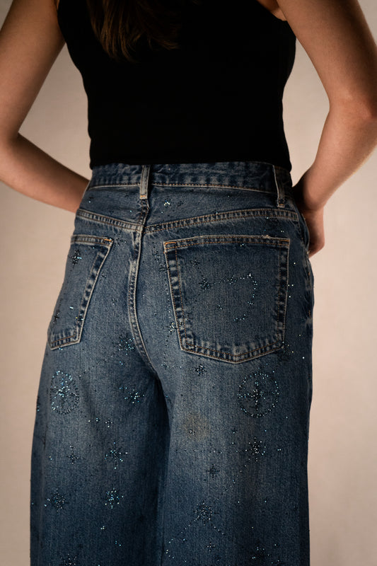 Jean Estelar Azul Oscuro Wide Leg High Rise