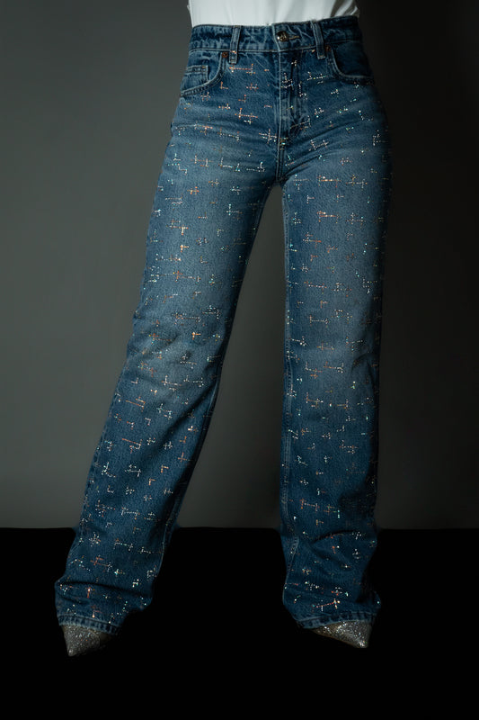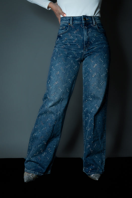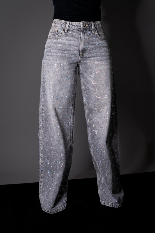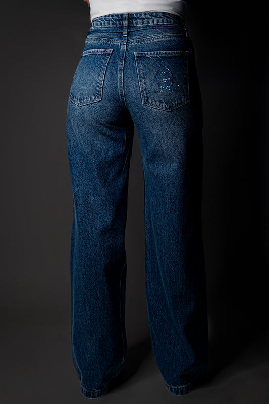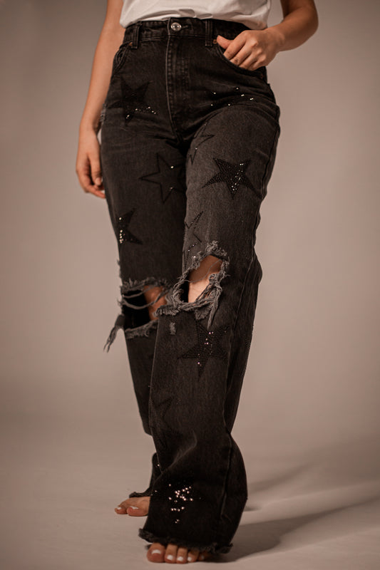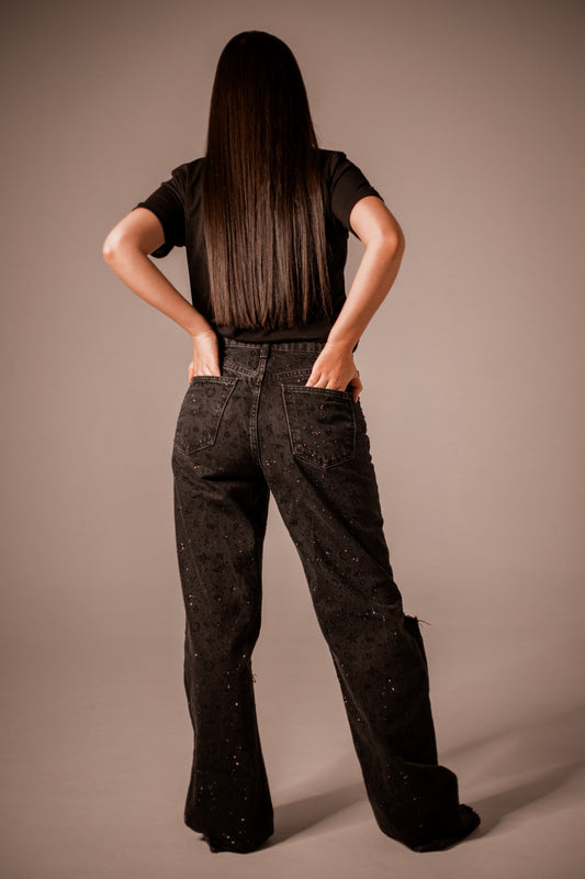 Jean Black Star Llenas Y Vacias Wide Leg High Rise